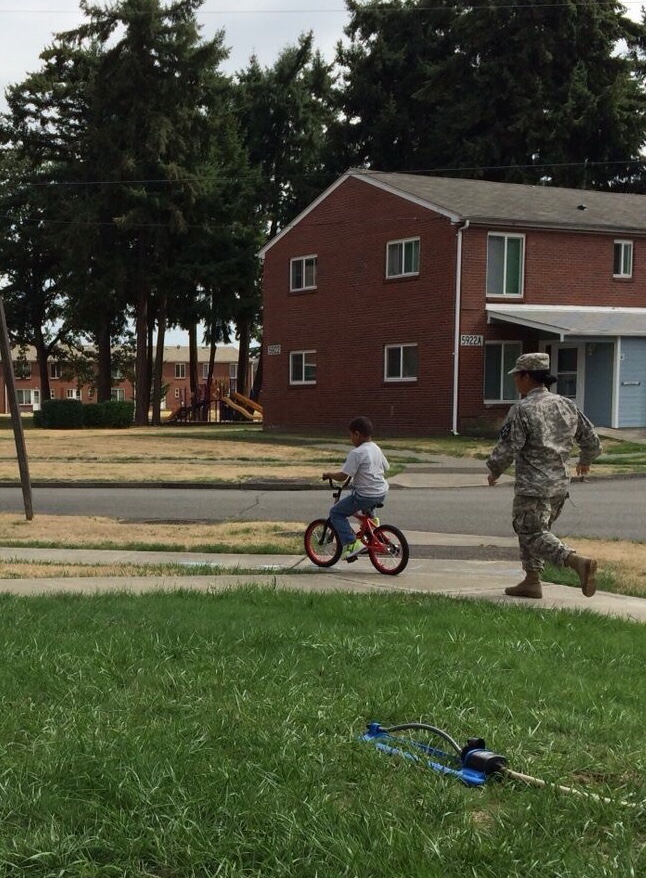 *Original Photo* (Eventually caught him – was trying to teach him to ride without training wheels, I suppose he learned, haha!)